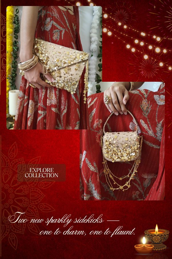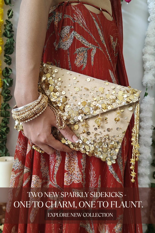 Our bags are intricately embellished with premium crystals and glass-beads, curated in a way that they can be flaunted with both ethnic and western ensembles; be it brunching, fine-dining, beach bumming, party hopping or a Big Fat Indian Wedding!