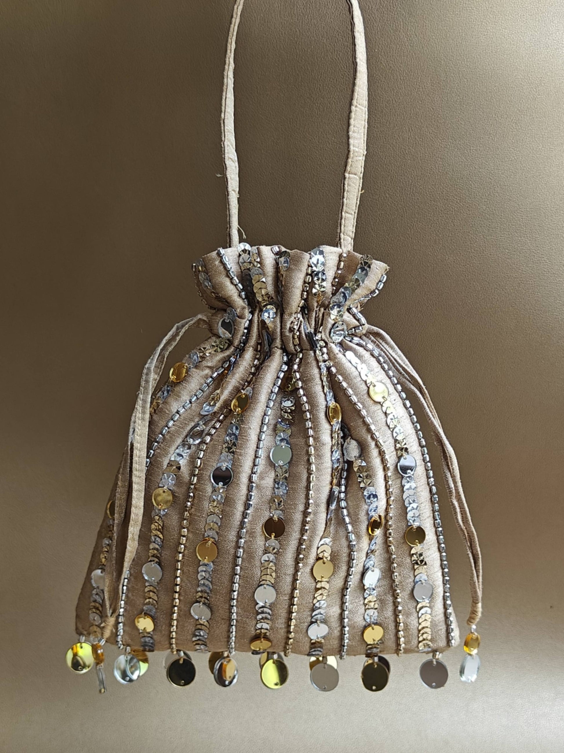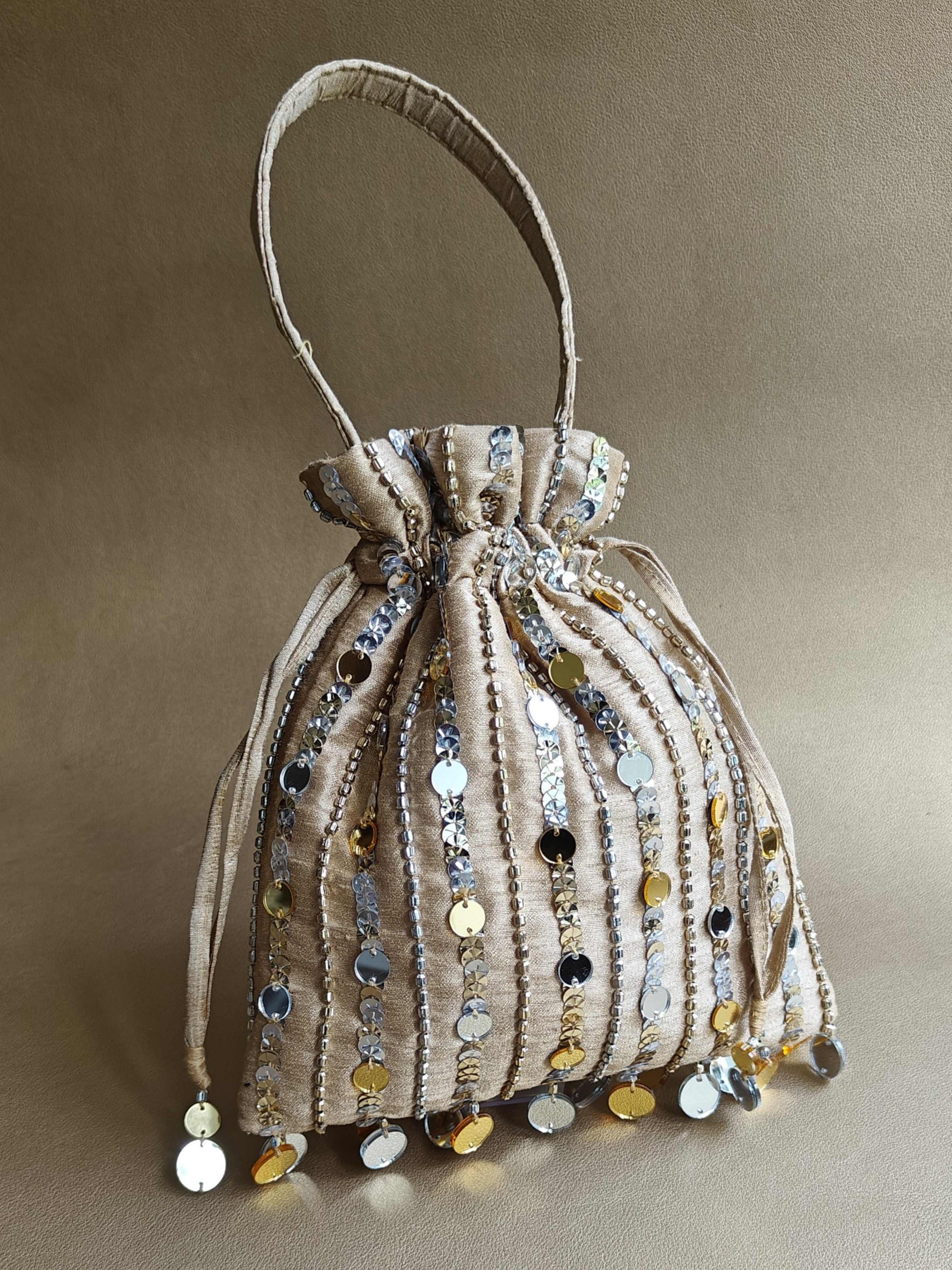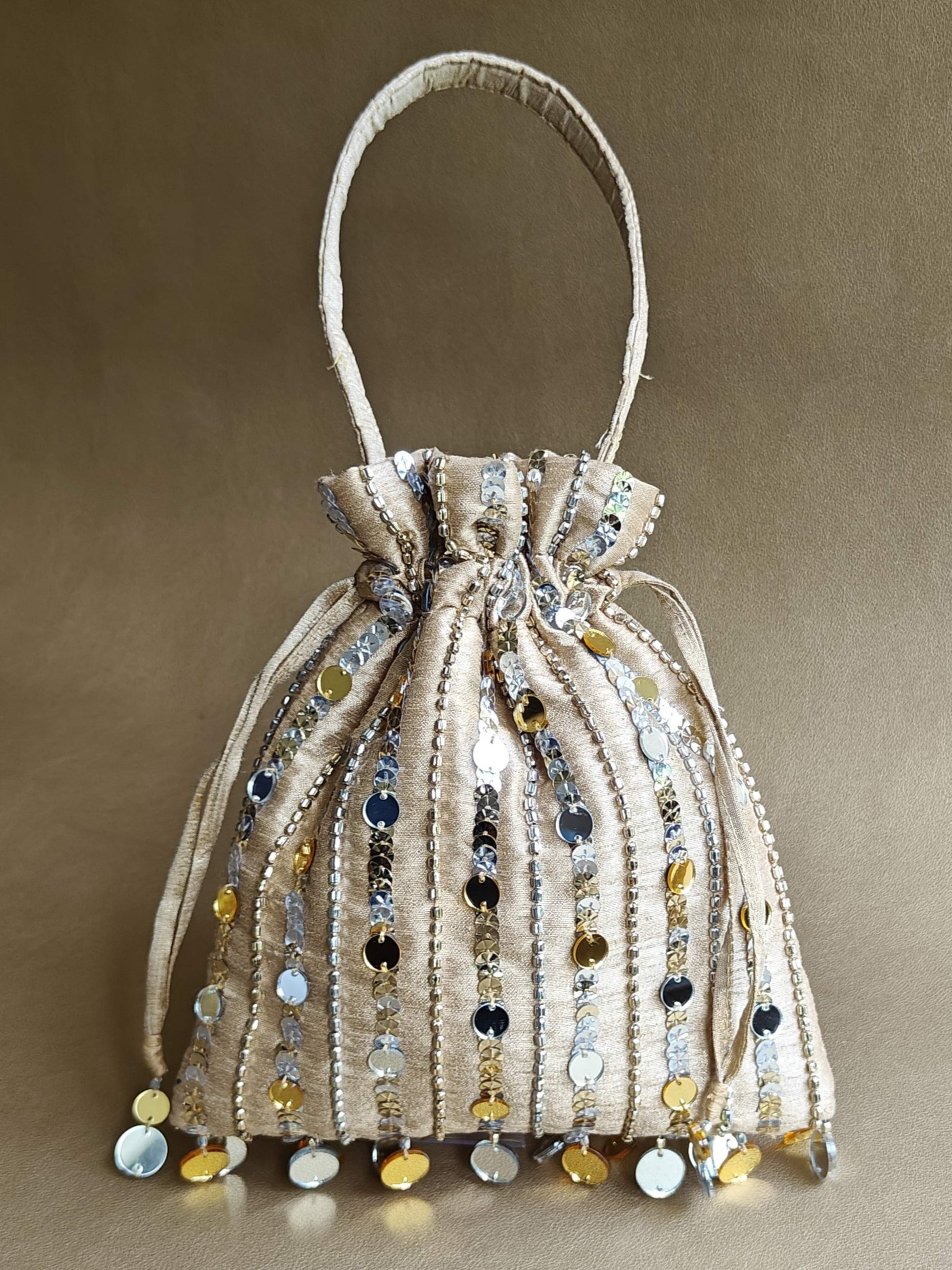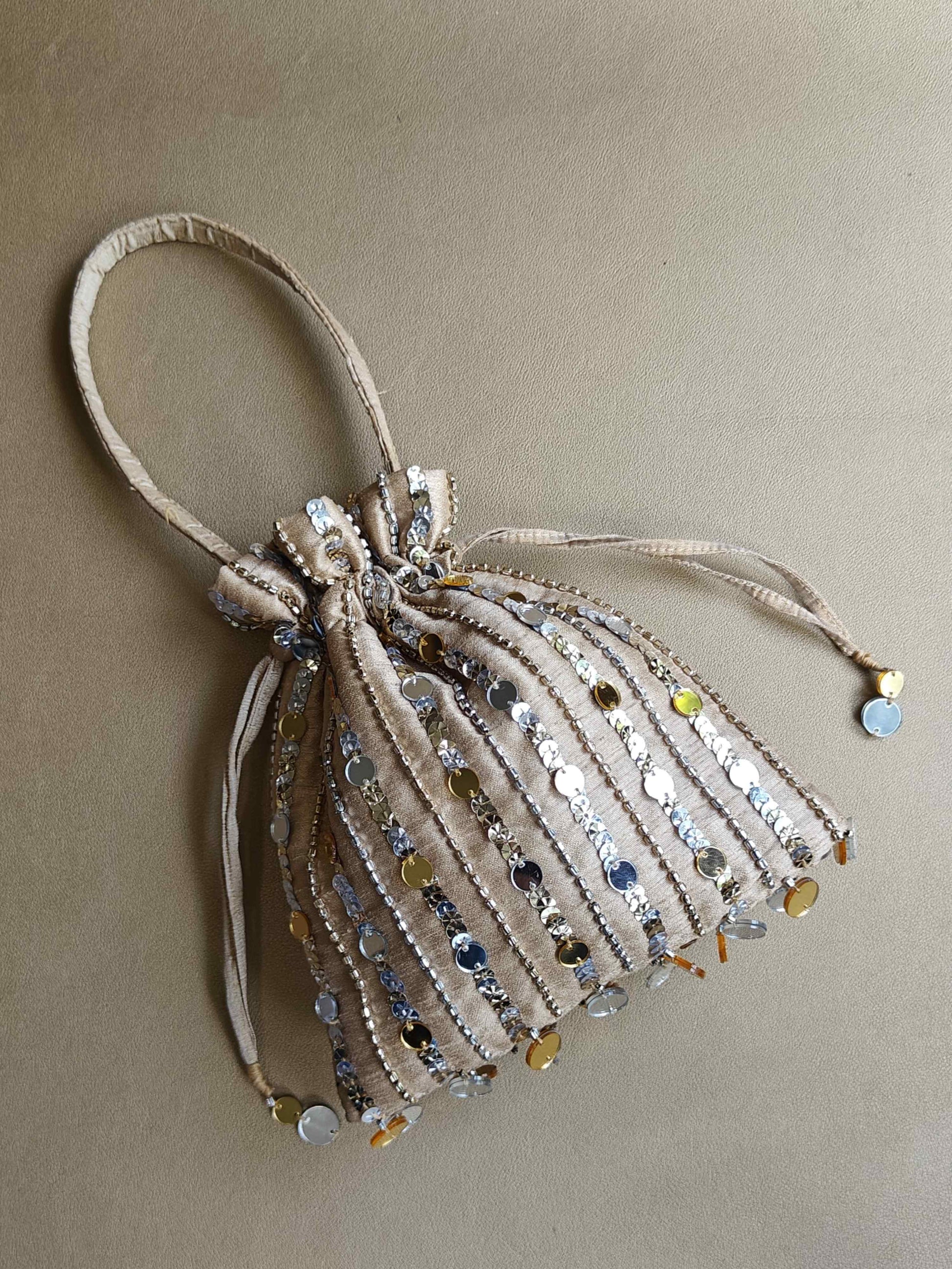 Just the right amount of bling and a perfect blend of silver and gold, this potli is simple but impactful. And yes! it'll hold your phone!