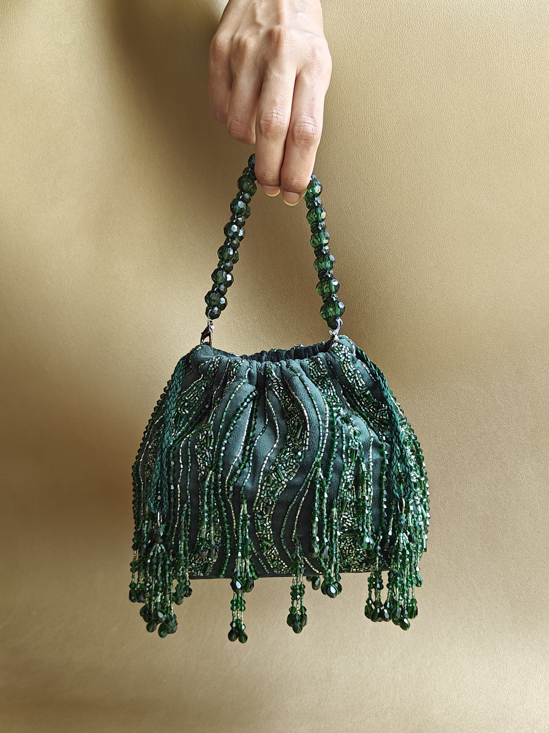 Elegance meets utility in our stunning glass bead embellished Pouch bag.