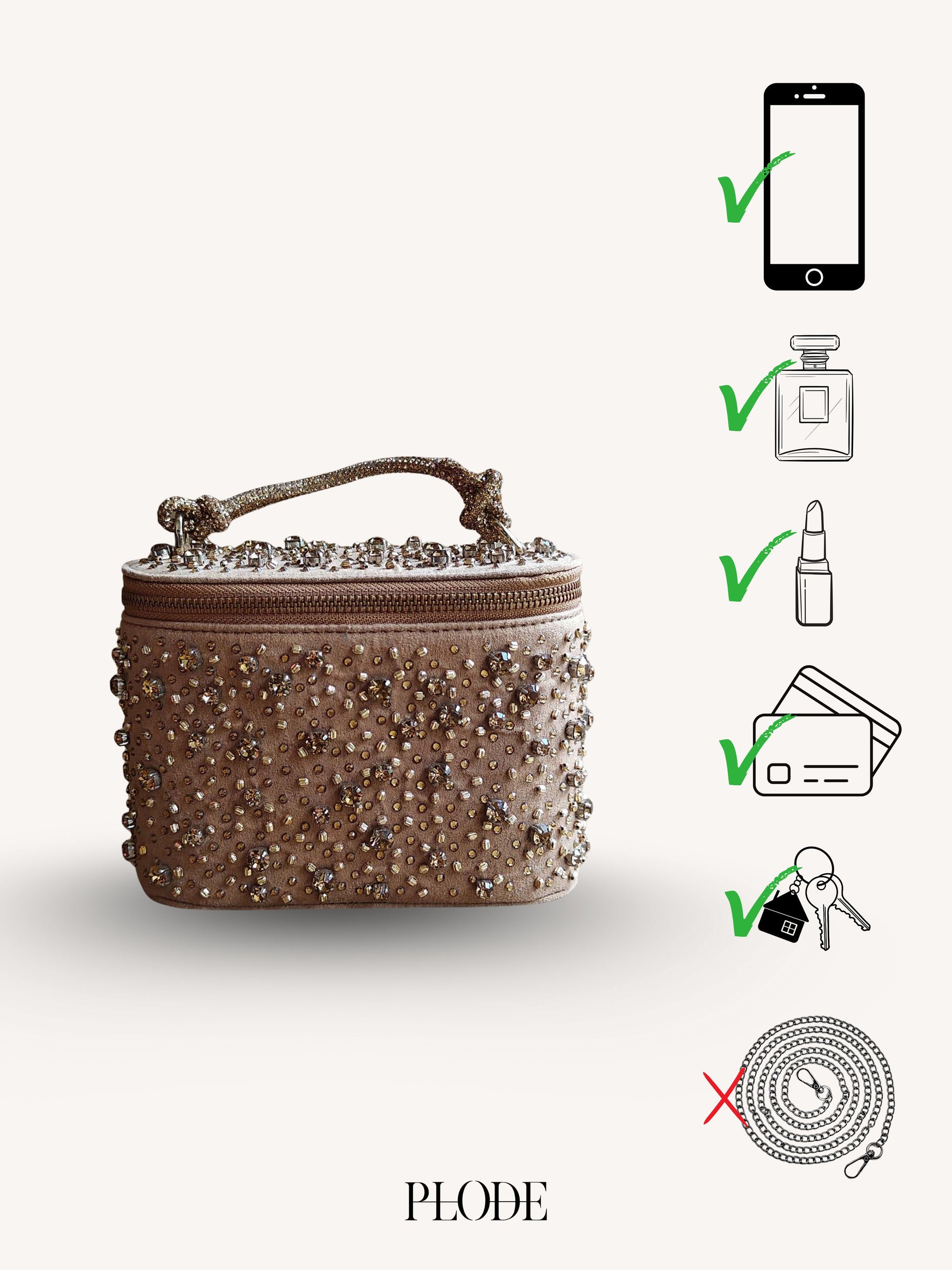 A dazzling accessory designed to elevate your style at parties and events, this opulent Vanity Bag boasts embroidery that shimmers and sparkles, capturing the essence of elegance and luxury.